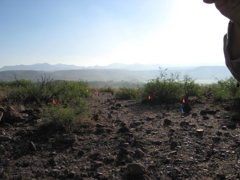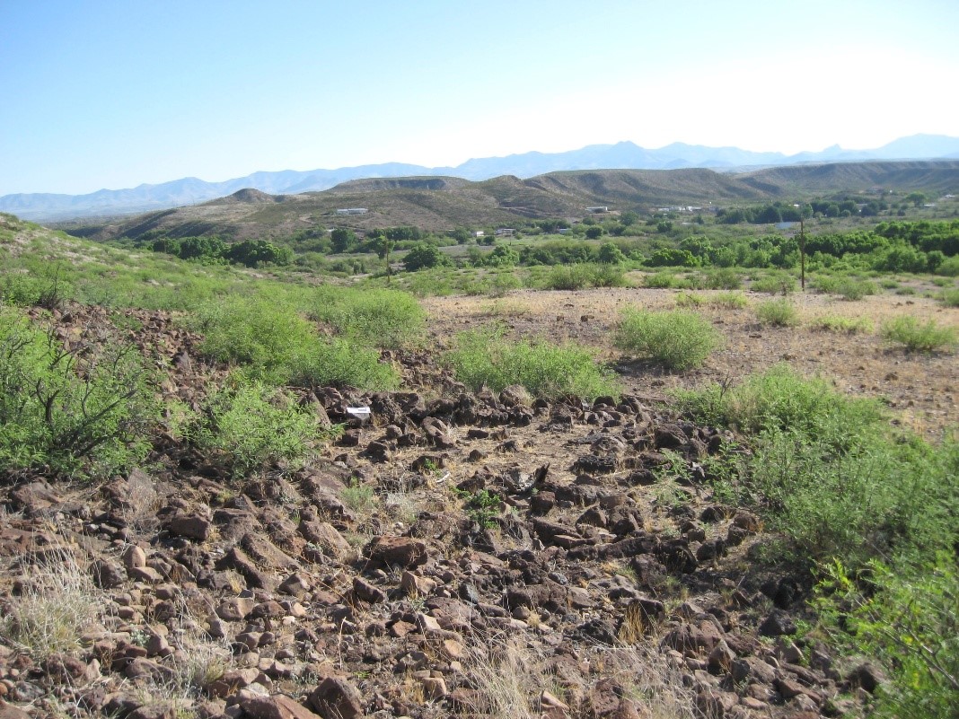 Today was a spectacular day and truly a rare opportunity. Dr. Art MacWilliams, Hayley Fishbeck, David Barron, and I explored a Cerro de Trincheras site nicknamed the Sanchez site just outside the town of Safford, Arizona. Our crew meandered around the site, performing informal survey, and located constructed terraces and walls, over 80 rock ring structures, and an array of cultural material such as flaked stone, Early Pithouse ceramic sherds, and groundstone. At the end of the work day even though we were ready to leave, we still took the time to take in the view of this beautiful landscape and bask in an opportunity of a lifetime.
